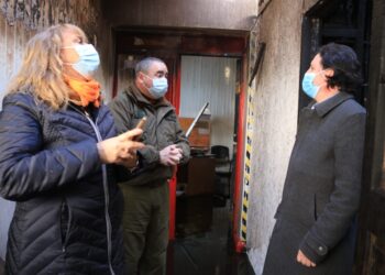 Tras el siniestro de la Quinta Comisaría de Carabineros de Pitrufquén, es que el delegado Raúl Allard junto al jefe ...